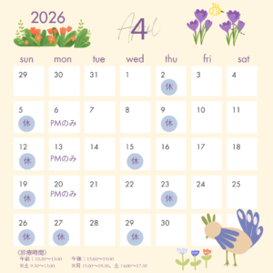 2026年4月1日(水)より、診療時間が下記のように変更になりました。